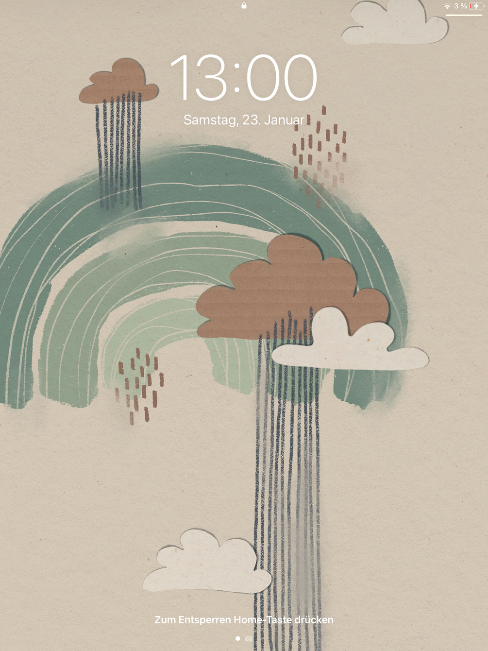 Free Illustrated abstract pastell Wallpaper for Ipad and Phone with Rainy Clouds and pastell green Rainbow pattern Digital Collage with texture